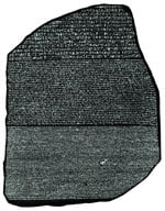 Найденный в 1799 году офицером армии Наполеона, так называемый, «Розеттский камень», с идентичными по содержанию иероглифическим, демотическим и греческим текстами, первым дал ключ к дешифровке египетских иероглифов. Сначала работа различных исследователей над его переводом была безуспешна. Французский арабист А. И. Сильвестр де Саси и шведский ориенталист Ю. Д. Окерблад сумели понять, что по крайней мере часть знаков египетского письма отображала не слова, а звуки, однако они проигнорировали консонантный характер египетского письма, что выглядит особенно удивительным, учитывая то, что учёные были семитологами, хорошо знакомыми с консонантными письменностями. Датскому учёному Й. Соэга удалось определить, что имена фараонов в текстах окружаются рамкой (картушем). Заинтересовавшийся проблемой дешифровки египетских иероглифов физик и востоковед Т. Юнг сумел определить звуковое значение нескольких иероглифов и вплотную подошёл к дешифровке Розетского камня.
